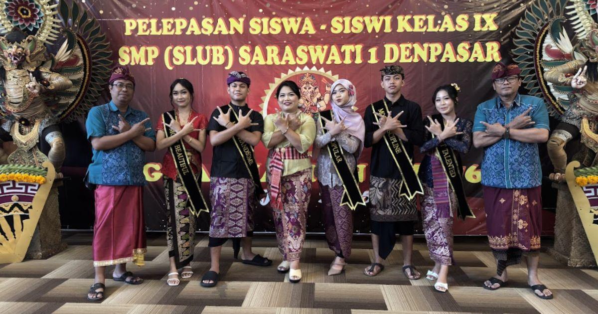 Pelepasan kelas IX Angkatan 76 SMP (SLUB) Saraswati 1 Denpasar telah dilakukan pada Kamis, 19 Juni 2025 lalu (19/6). Kegiatan pelepasan yang berlangsung penuh haru ini bertempat di Auditorium Saraswati dihadiri oleh seluruh siswa kelas IX, guru, pegawai, serta orang tua siswa kelas IX. Dalam kegiatan ini secara resmi pihak sekolah melalui Kepala SMP (SLUB) Saraswati 1 Denpasar menyerahkan dan melepaskan tanggung jawab pendidikan anak-anak kelas IX kembali kepada orangtua masing-masing. Anak-anak kelas IX Secara resmi menyandang predikat sebagai "alumni".