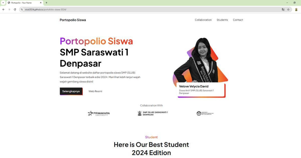 Mengisi jeda akhir semester usai kegiatan Sumatif Akhir Semester (SAS), SMP (SLUB) Saraswati 1 Denpasar bekerja sama dengan mahasiswa Primakara University melakukan pelatihan pembuatan website sederhana pada 16 Desember 2024 (16/12) lalu. Kegiatan ini diselenggarakan di laboratorium komputer SLUB bersama 30 siswa kelas VII, VIII, dan IX yang tertarik membuat website berupa portofolio/personal branding.